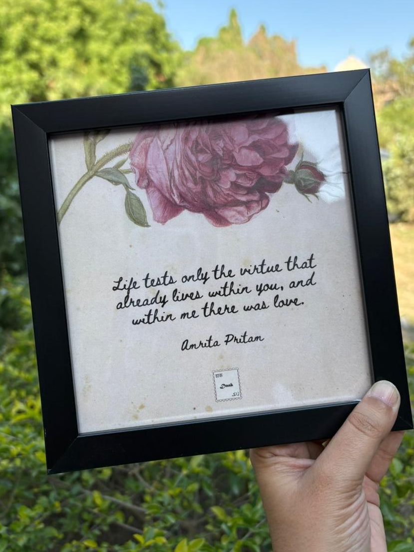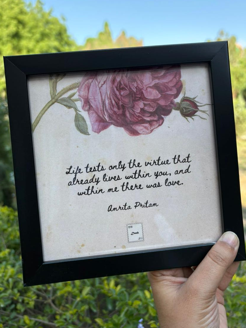 Celebrate the timeless wisdom of Amrita Pritam with this elegant quote frame. A thoughtful addition to bedrooms, study rooms, or living spaces that honors one of India's most influential voices in literature.