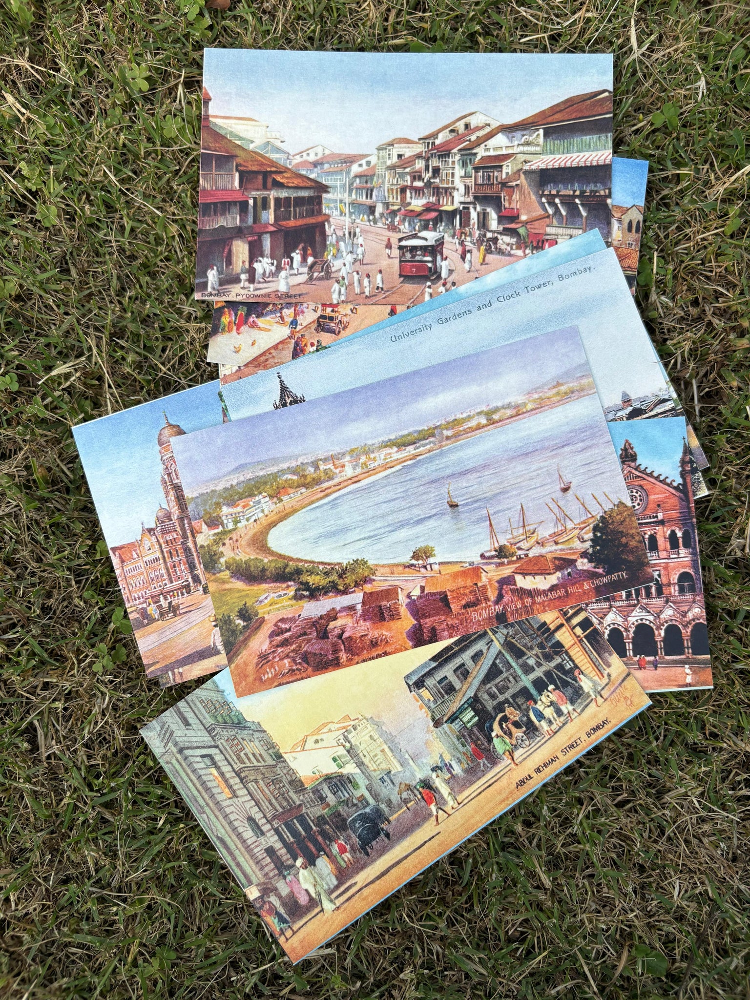 The Daak Postcards Bombay set includes 10 uniquely designed postcards showcasing the vibrant culture and iconic landmarks of Bombay.