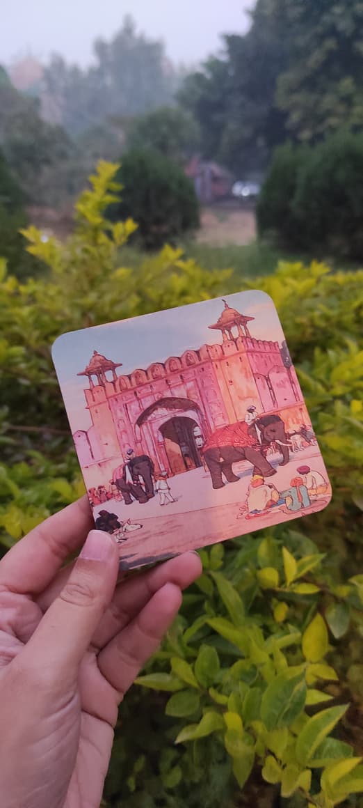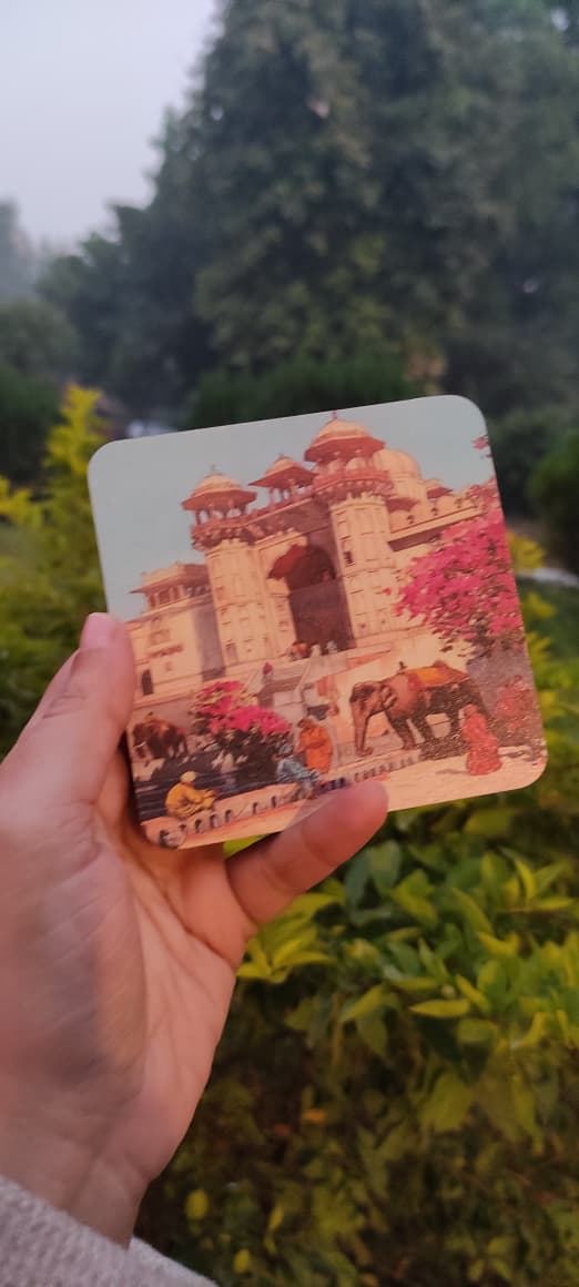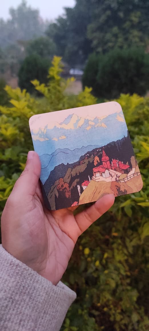 This coaster set captures the essence of Hiroshi Yoshida's woodblock prints, focusing on iconic landmarks of India. Each coaster showcases his signature style that merges traditional Japanese techniques with vibrant Indian landscapes and architecture, making it an ideal gift for art and culture enthusiasts.